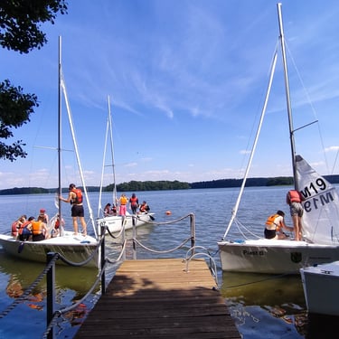 Dzieci 8-13 lat - żeglowanie na łódkach typu Optimist. Program dopasowany do młodszych uczestników. Nauka poprzez zabawę, żeglarstwo w przystępnej formie.