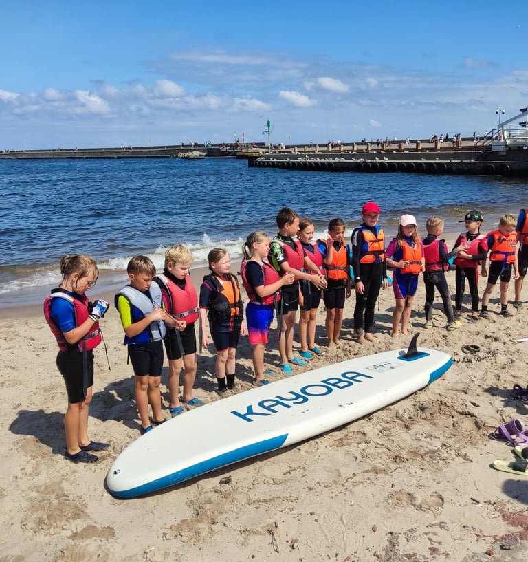 Dotychczas półkolonie odbywały się w Porcie Ustka. Jednak ze względu na przebudowę portu w tym roku przenieśliśmy się do naszej malowniczej bazy nad Jeziorem Jasień na Kaszubach. To urokliwe miejsce z dostępem do plaży, przystani żeglarskiej i lasku – idealne na letni wypoczynek.